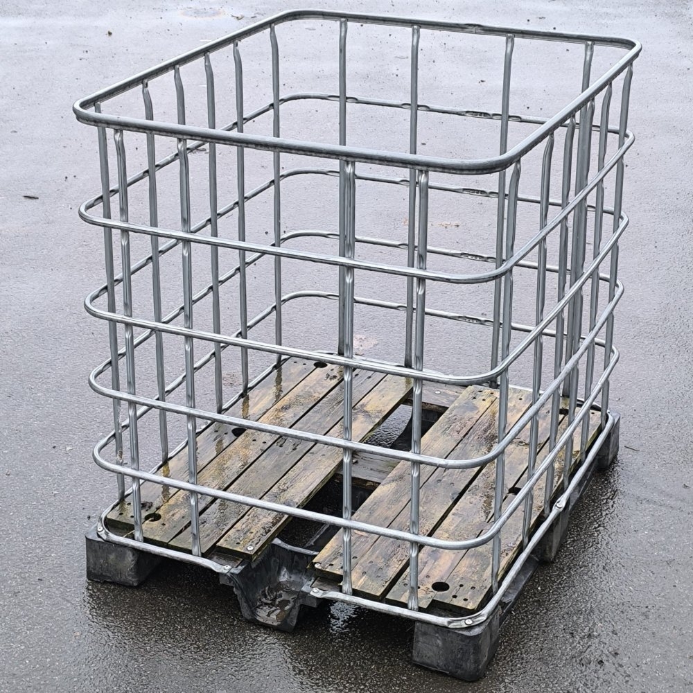 Ocelová pozinkovaná klec s plasto-dřevěnou paletou pro IBC kontejner