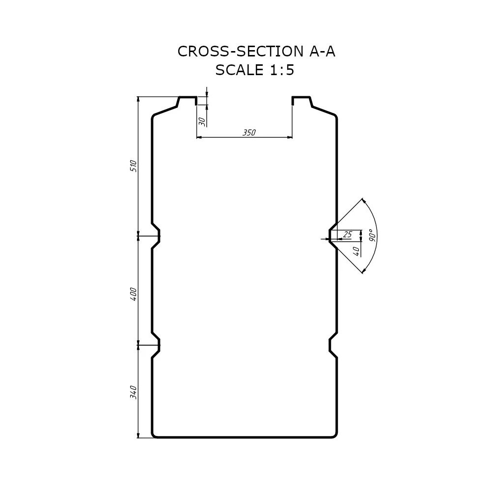 Součástí fotografií a nákresů je výkres poskytujicí podrobný popis rozměrů a konstrukce.