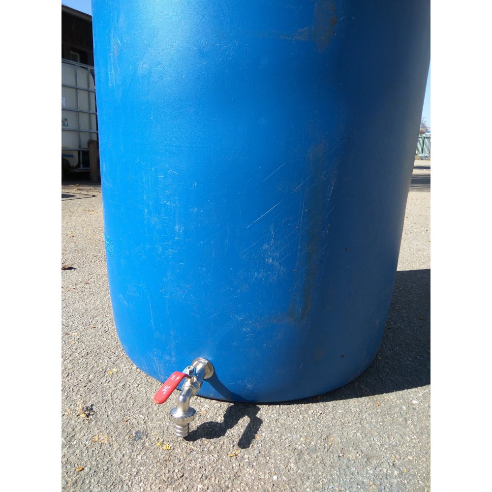 Пластиковая бочка с отрезанной верхушкой, включая сливной кран 3/4 дюйма.