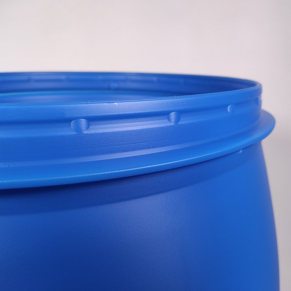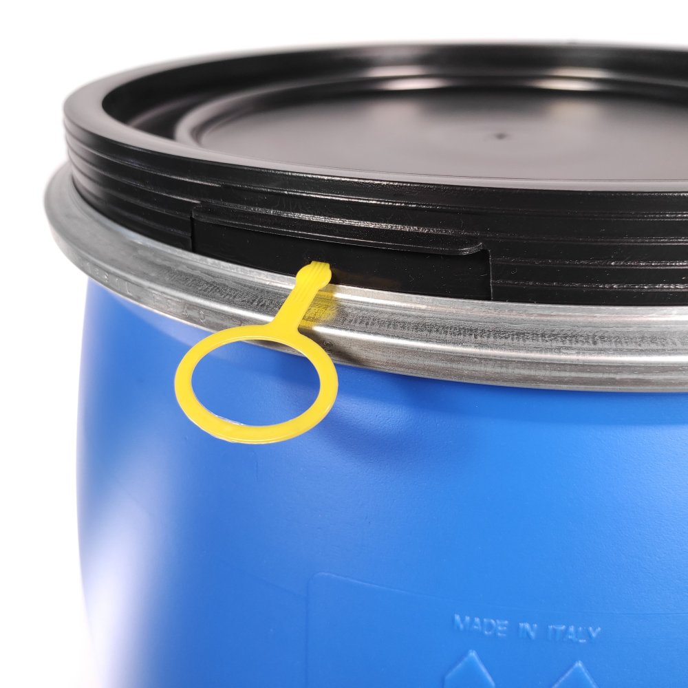 Новая пластиковая бочка с защелкивающейся крышкой и закрывающим кольцом.