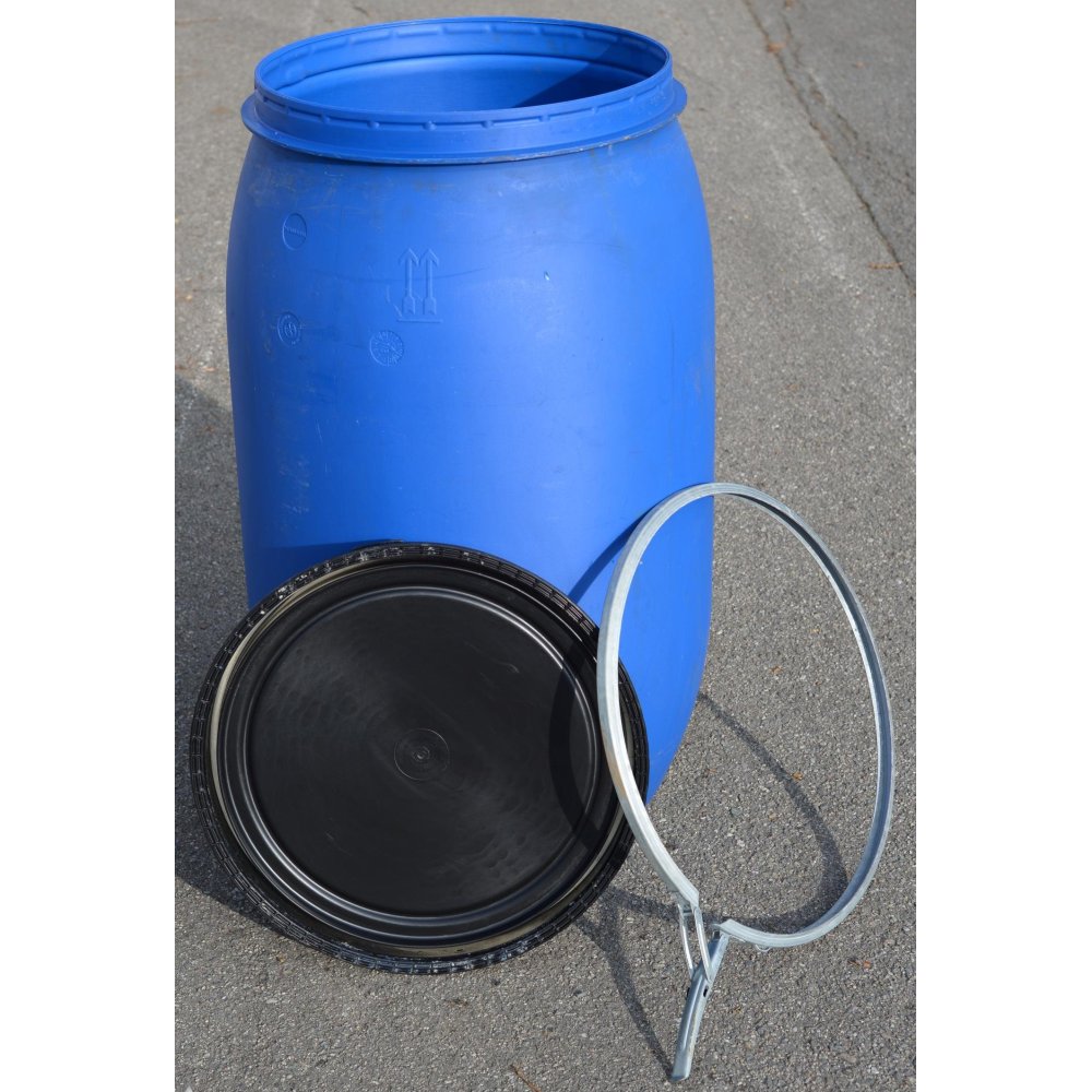 Бочка (бочка) с крышкой и закрывающимся металлическим обручем.