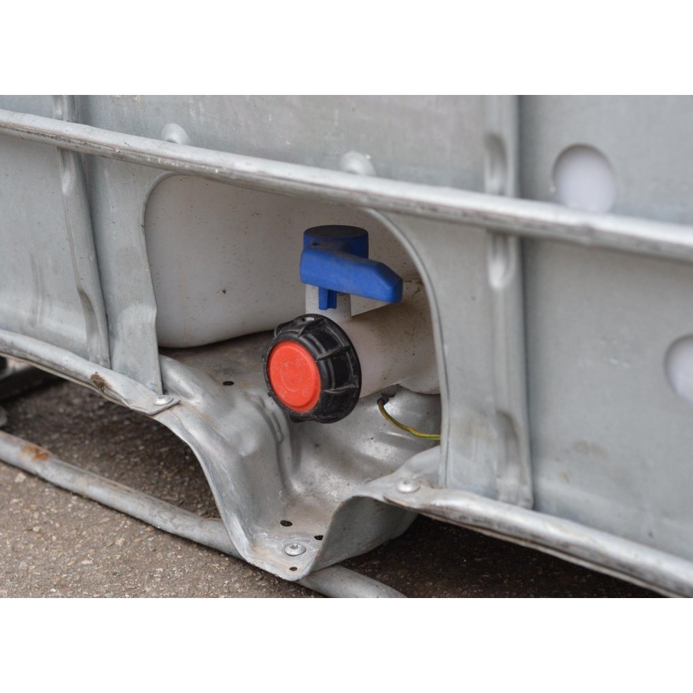 Nádrž je ve spodní části na kratší straně osazena plastovým výpustním kohoutem.