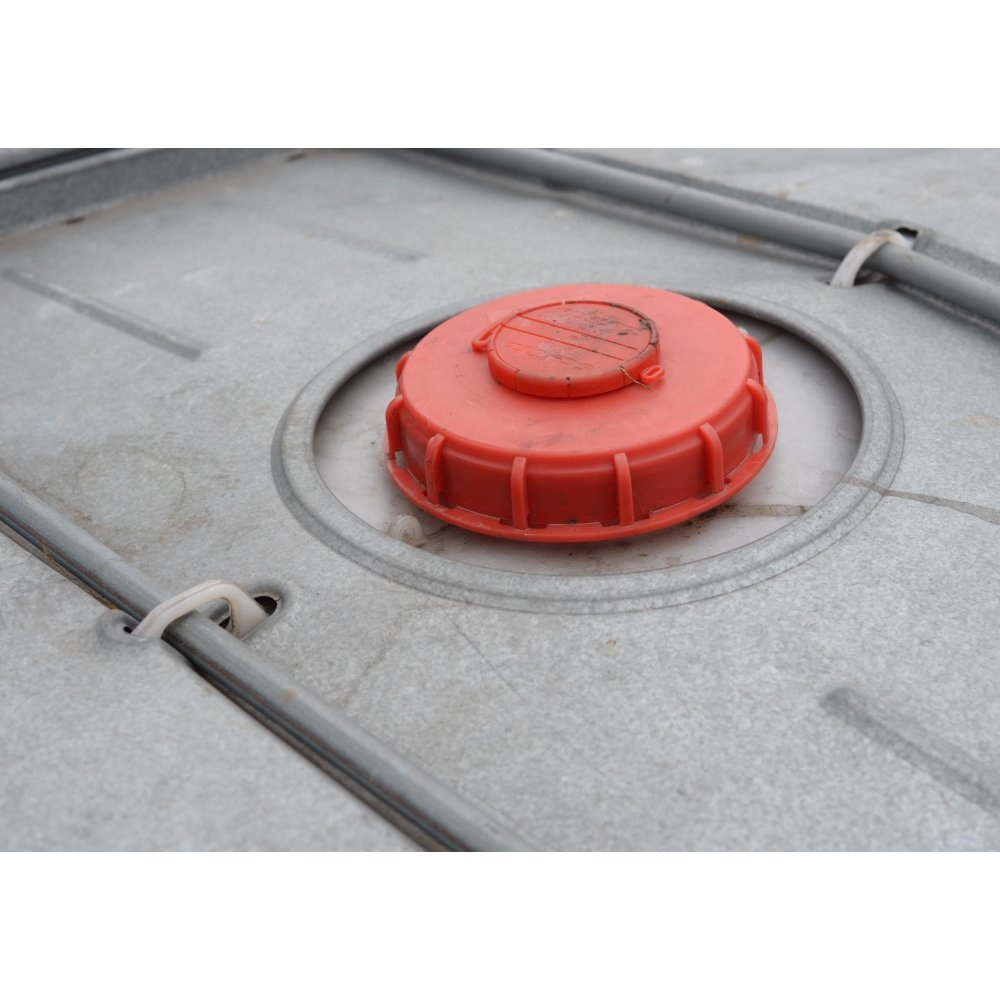 Spodní výpust nádrž má na výstupní straně závit. Je uzavřena těsnícím víčkem pro dvojí jištění.