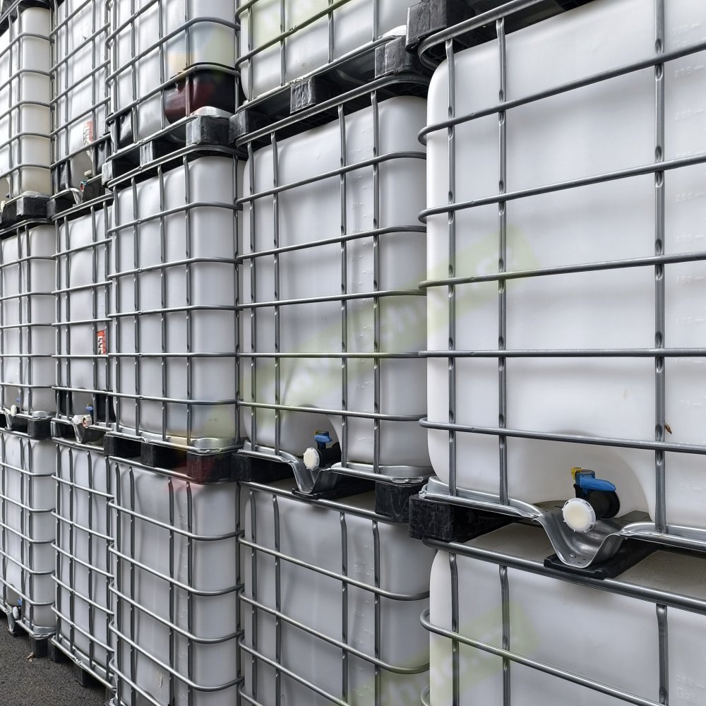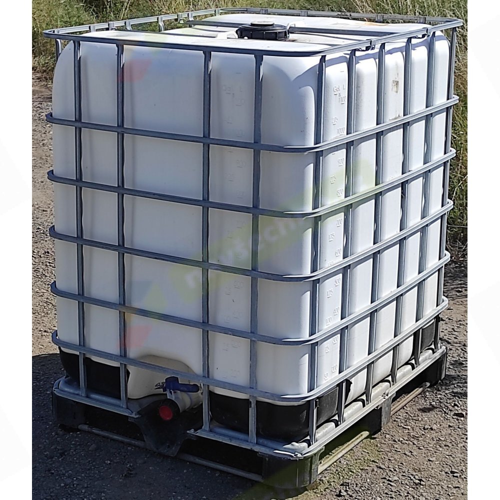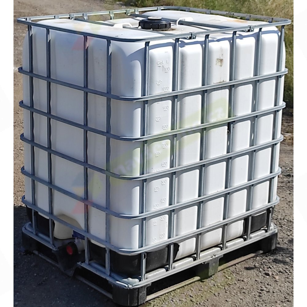 Бак IBC 1200л мытый, включая клетку на оцинкованном поддоне (пластиковые блоки), подходит для хозяйственно-бытовой и дождевой воды для вашего сада или технических жидкостей, таких как AdBlue, дизельное топливо, печное топливо..