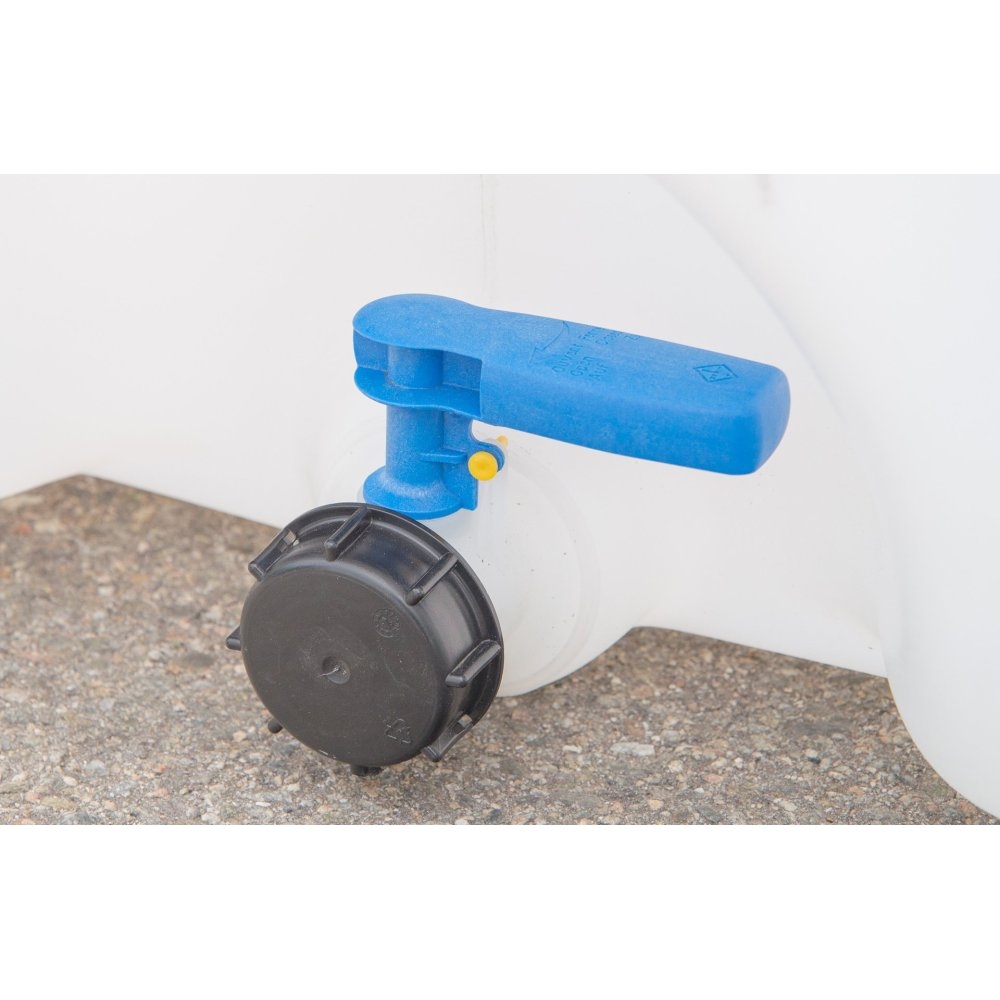 IBC kontejner je určen pro přepravu tekutin a výpustný ventil není koncipován na časté používání.
