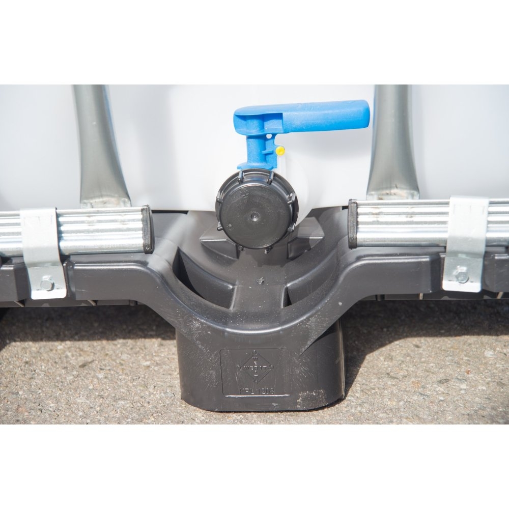 IBC kontejner je určen pro přepravu tekutin a výpustný ventil není koncipován na časté používání.