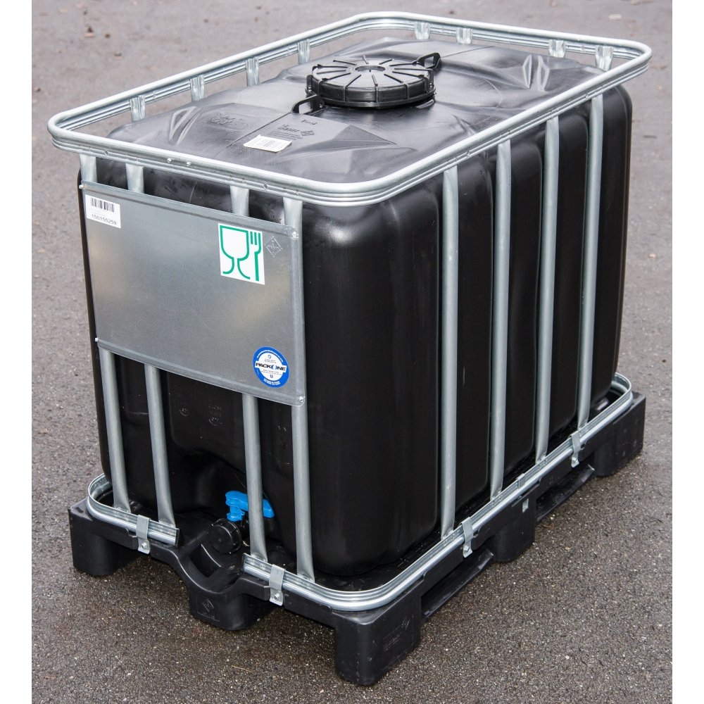 Цистерна IBC поставляется в клетки из оцинкованной стали на новом пластиковом поддоне .