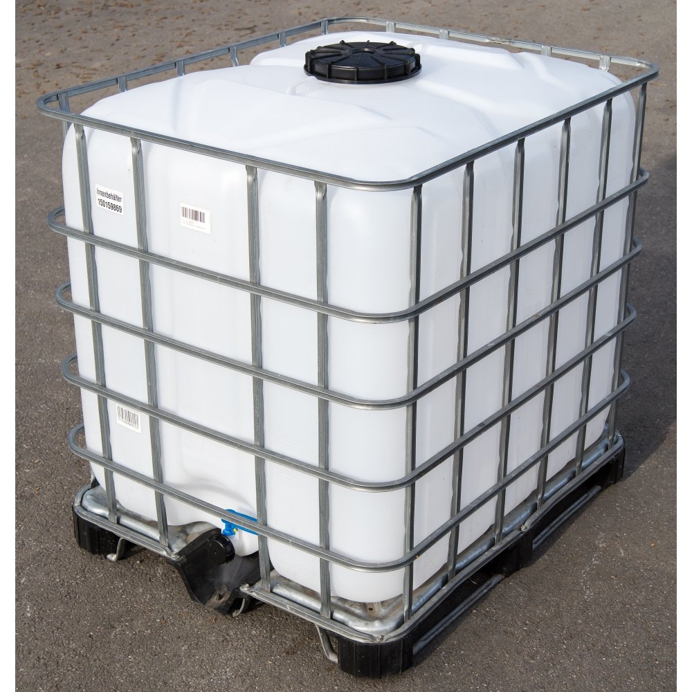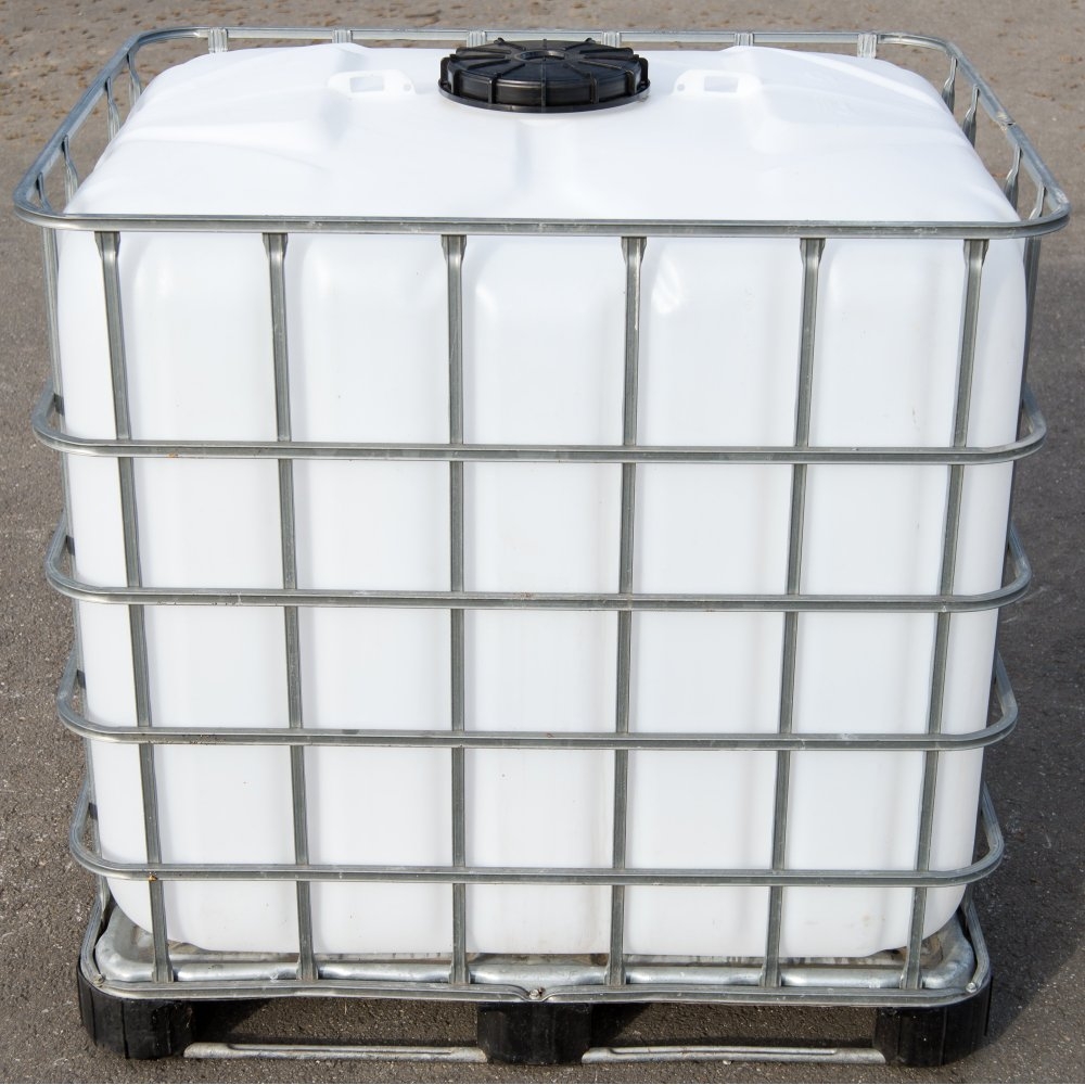 Цистерна IBC поставляется в клетки из оцинкованной стали на оцинкованном/пластиковом поддоне .