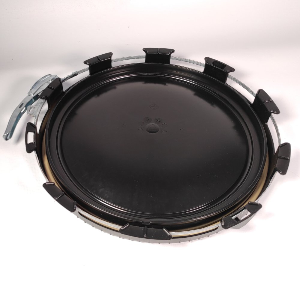 Новая крышка верхнего впускного отверстия резервуаров IBC для открытия DN400 (полезный вход 400 мм). Внутренний диаметр: 400 мм.Крышки черные, с зажимом из оцинкованной стали.