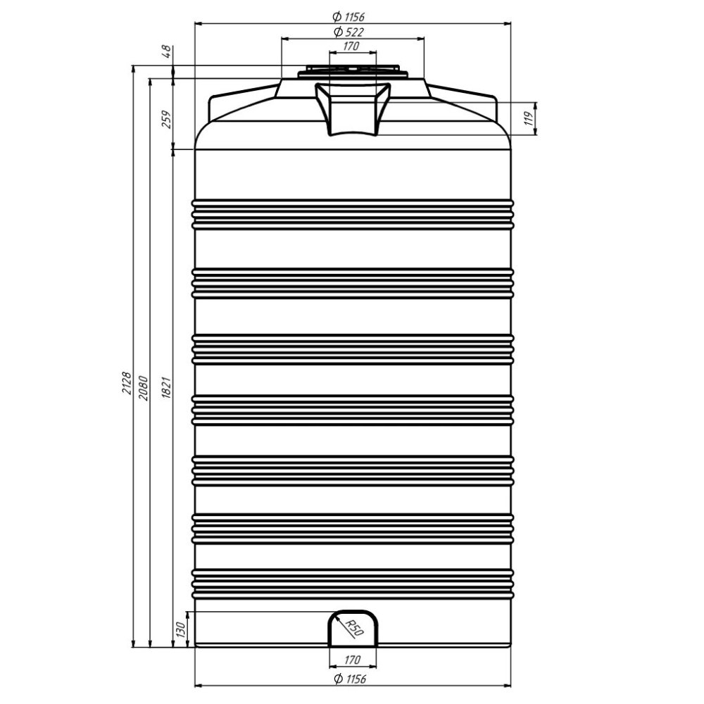 Прочность резервуара обеспечивается несколькими кольцевыми усилениями.