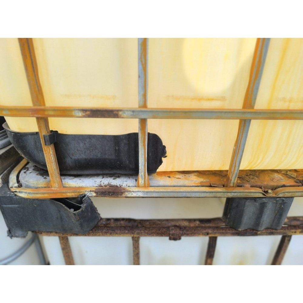 IBC tankı şu şekilde tedarik edilir: Ayrıca gözle görülür şekilde kalite düşüklüğü yaşayabilen galvanizli çelik kafesler de mevcuttur.